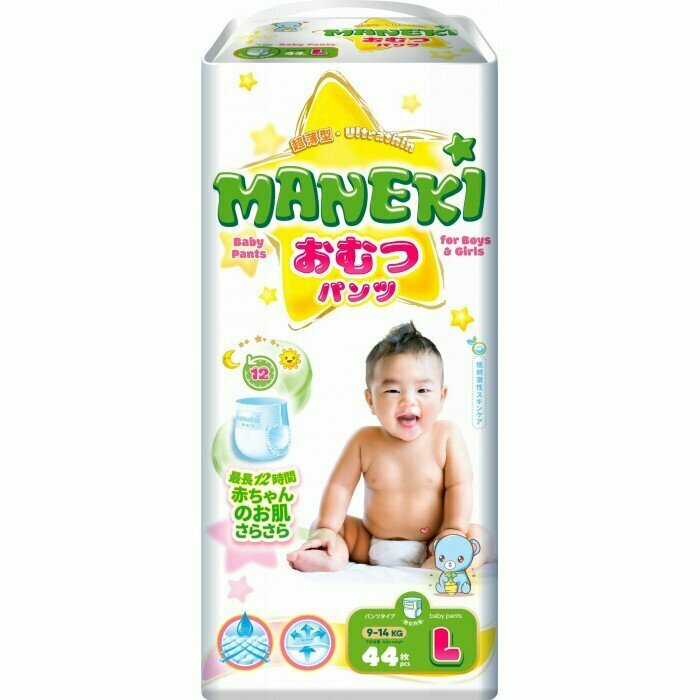 Купить MANEKI Подгузники-трусики детские одноразовые, размер L, 9-14 кг, 44 шт