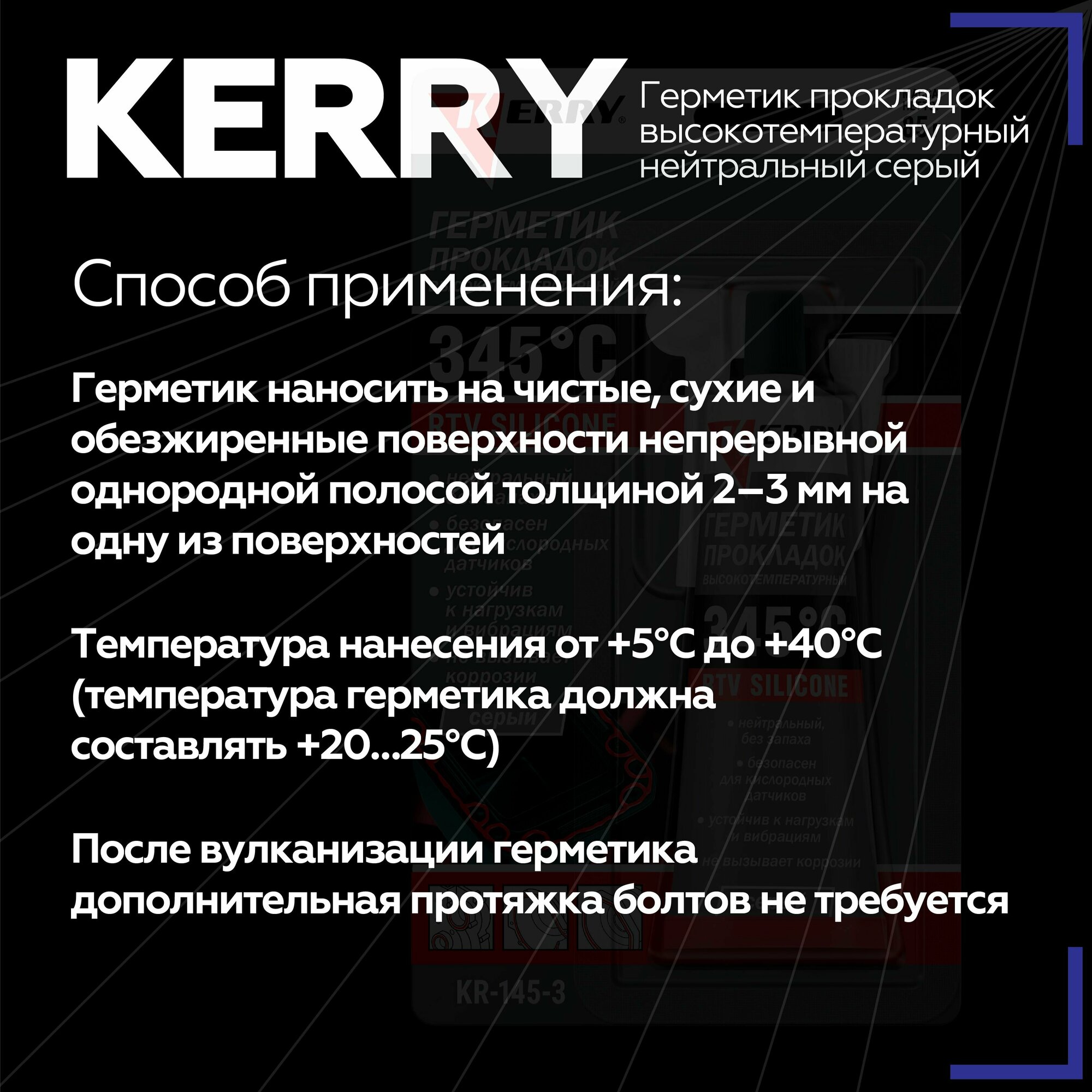 KERRY KR-145-3 Герметик Kerry KR-145-3 85г высокотемпературный силиконовый серый RTV