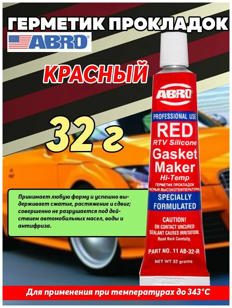 Купить Силиконовый герметик прокладка ABRO Gasket Maker Red Высокотемпературный герметик прокладок RTV туба 32 г. 11-АВ-CH-32