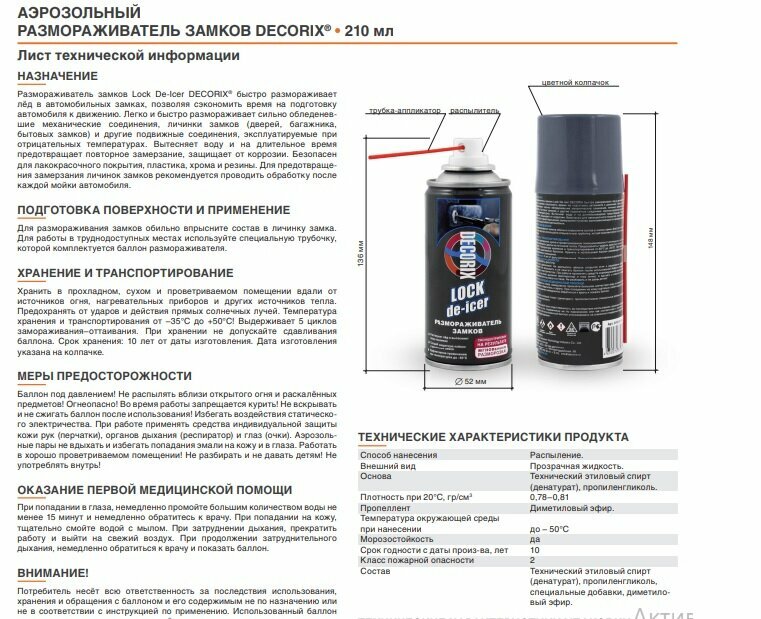 Аэрозольный размораживатель замков DECORIX, 210 мл интересное: