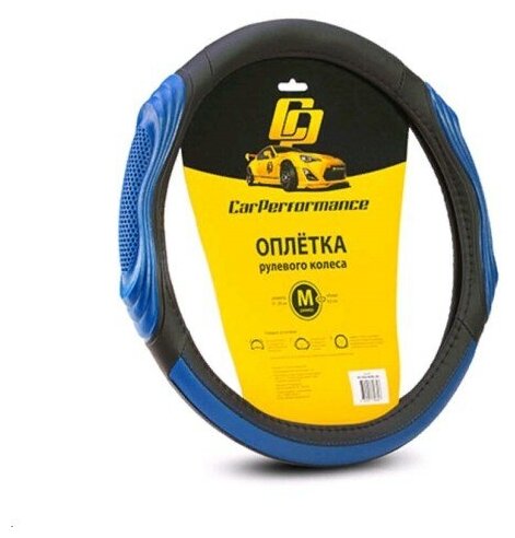 Оплётка руля CAR PERFORMANCE CP-2050 BK/BL (M), экокожа, две 3D вставки под хват, гладкая основа с перфорированной контрастной вставкой чёрн./синий, разм. М,