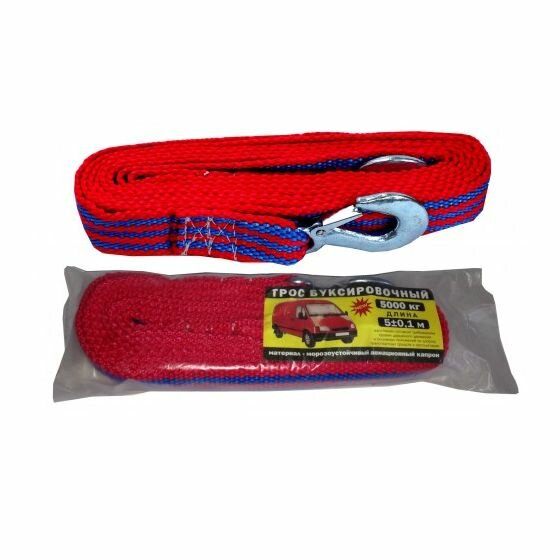 Трос буксировочный лента 5 т, 2 крюка, в блистере (стропа усиленная)