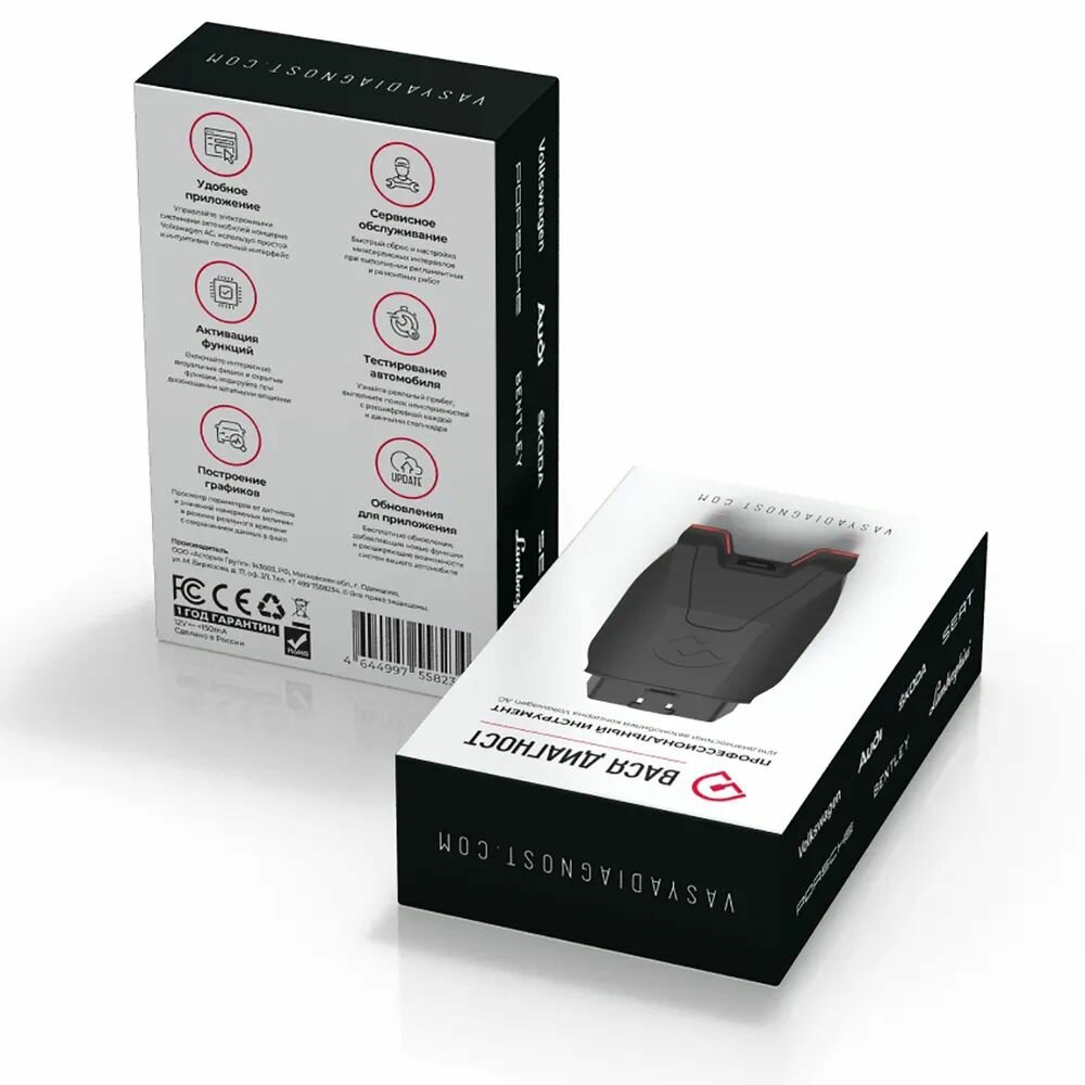 | Комплектация | Диагностический интерфейсный блок Вася Диагност, Кабель USB 2.0 AM-BM 2м съемный |