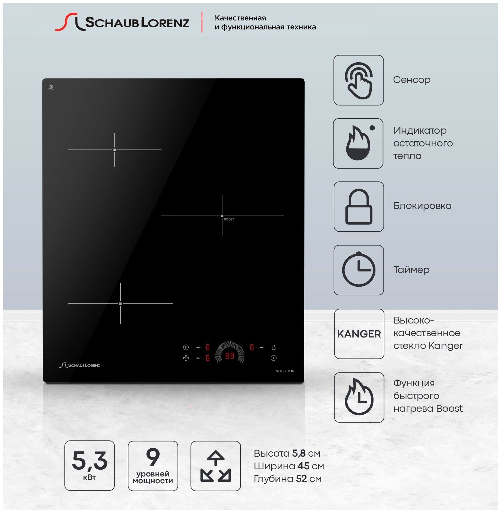 Индукционная встраиваемая варочная панель Schaub Lorenz SLK IY 41 H1, 45 см, черный