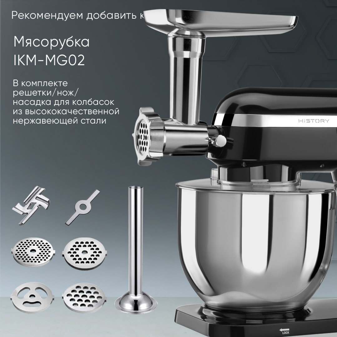 Кухонная машина планетарный миксер HiSTORY IKM-XD325, черная интересное: