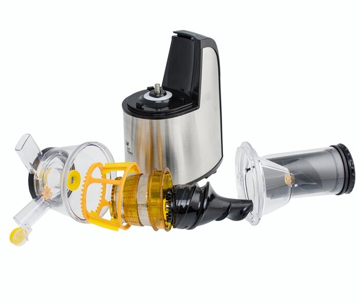 Жмых выходит аккуратный, практически сухой, в специально предназначенную емкость, не надо как в центробежных собирать его. Можно использовать далее для разных блюд и начинки. Сок получается насыщенный, из более мягких сортов с мякотью. По желанию можно дополнительно пропустить через сито, если мякоть в соке не нужна. Пользуемся данной моделью вторую неделю, вся семья в восторге. Все рекомендую приобрести данный девайс. |