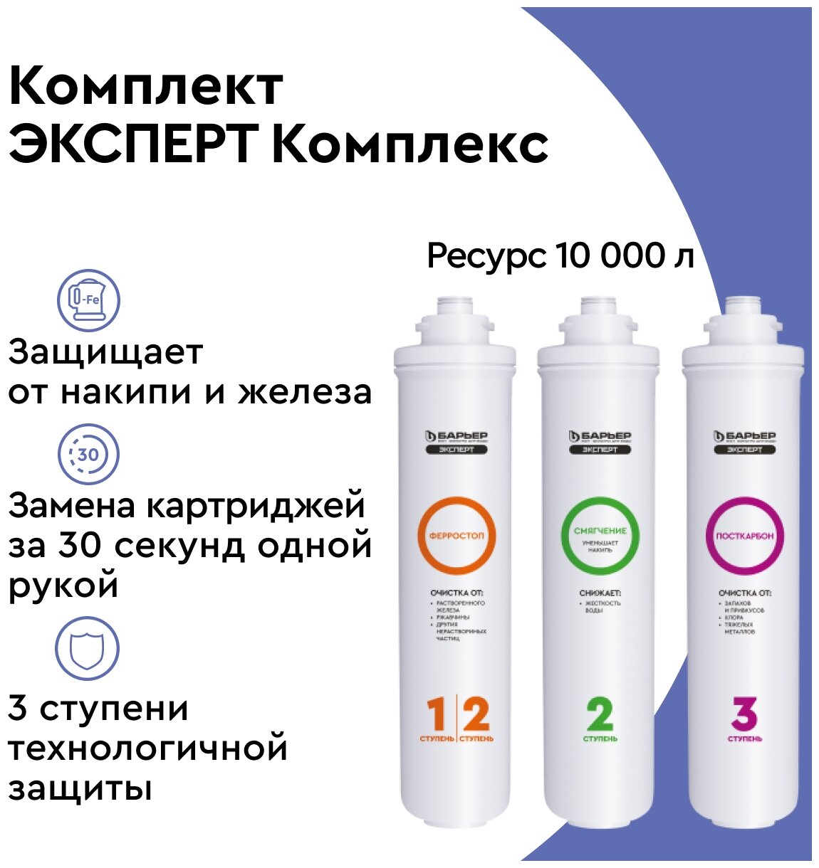 Комплект картриджей для фильтра под мойку барьер эксперт Комплекс, защищает от накипи и ржавчины