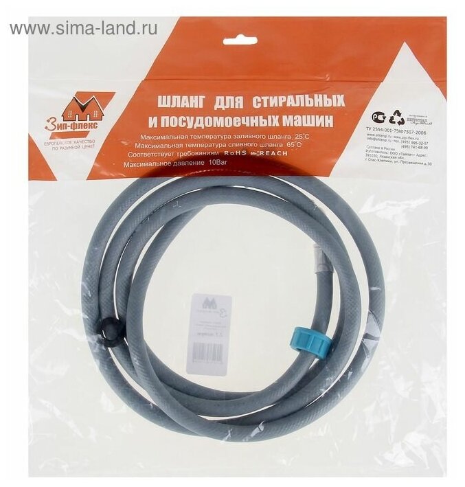 Зип-флекс Заливной шланг для стиральной машины "Зип-флекс", индивидуальная упаковка, 2.5 м