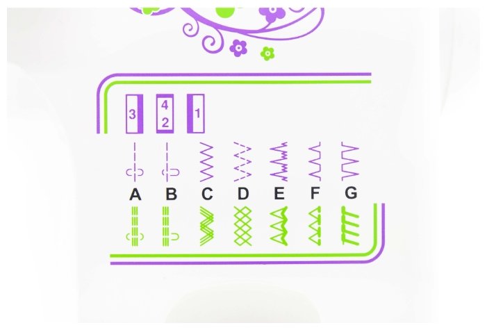 | Строчки | обметочная, потайная, эластичная, эластичная потайная, «зигзаг» |