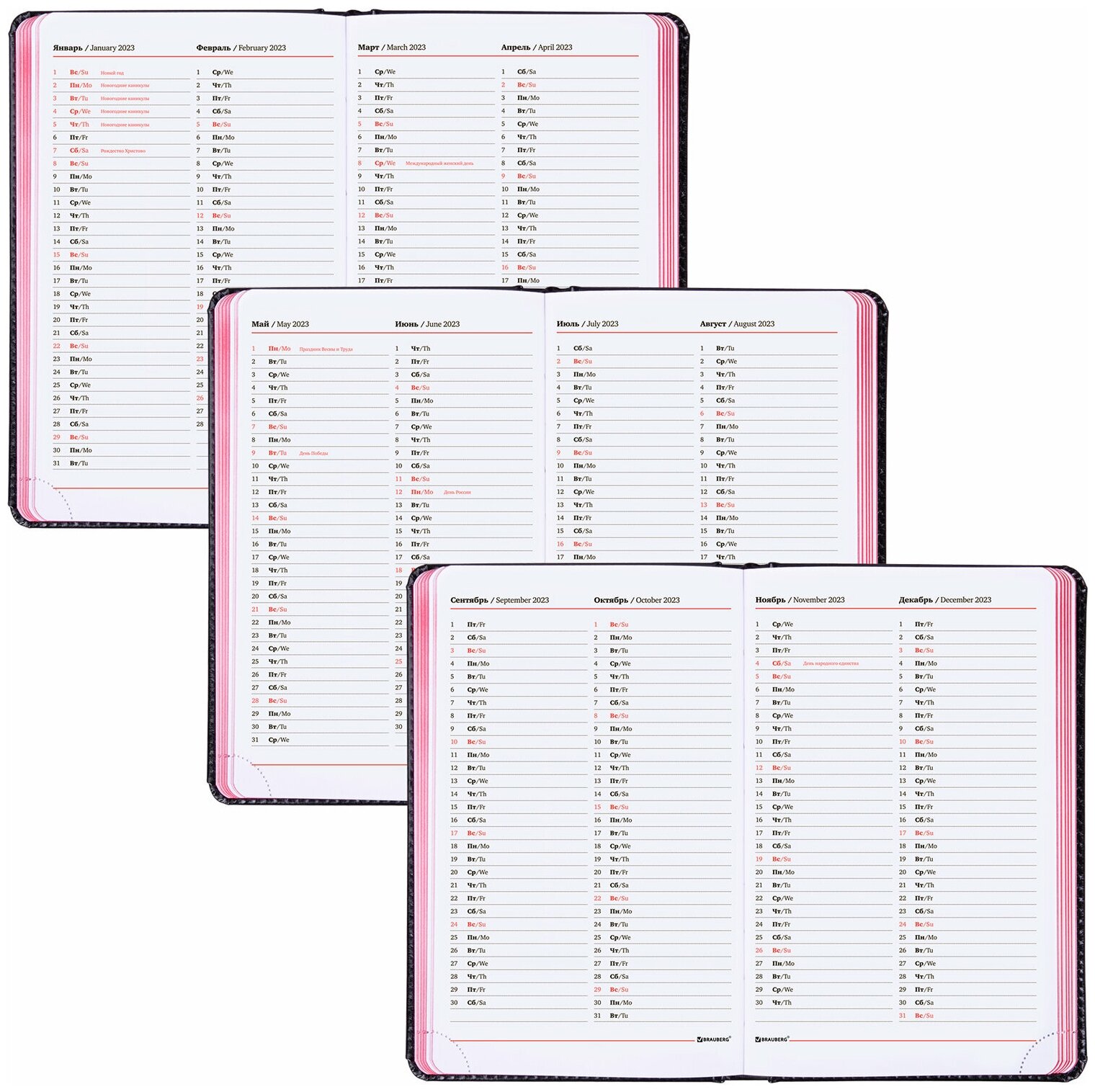 | Особенности | календарь / перфорация уголков / справочная информация / ляссе / прошивка по периметру обложки / закругленные углы |