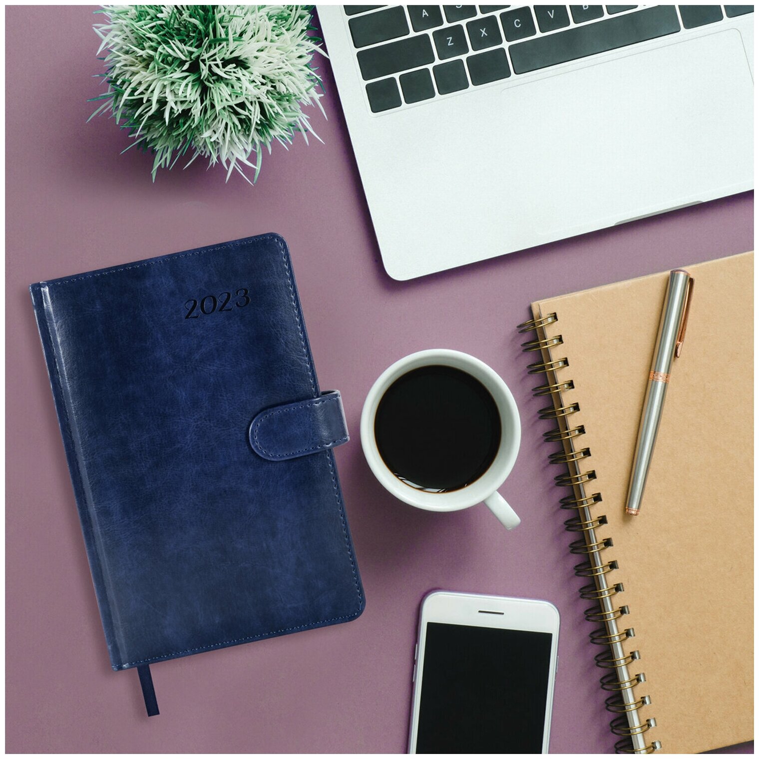 Купить Ежедневник датированный 2023 А5 138x213 мм BRAUBERG «Legend», под кожу, синий