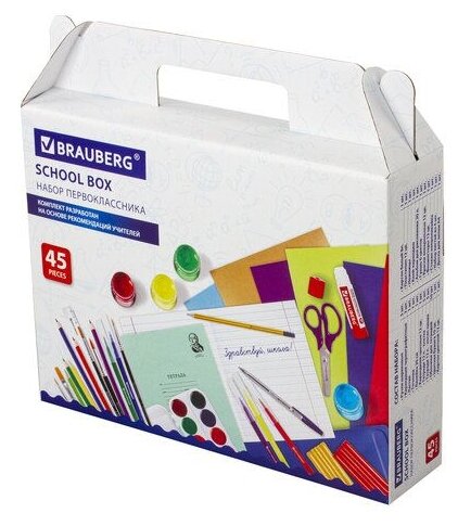 Набор школьных принадлежностей Brauberg в подарочной коробке, "Набор первоклассника", 45 предметов (880122)