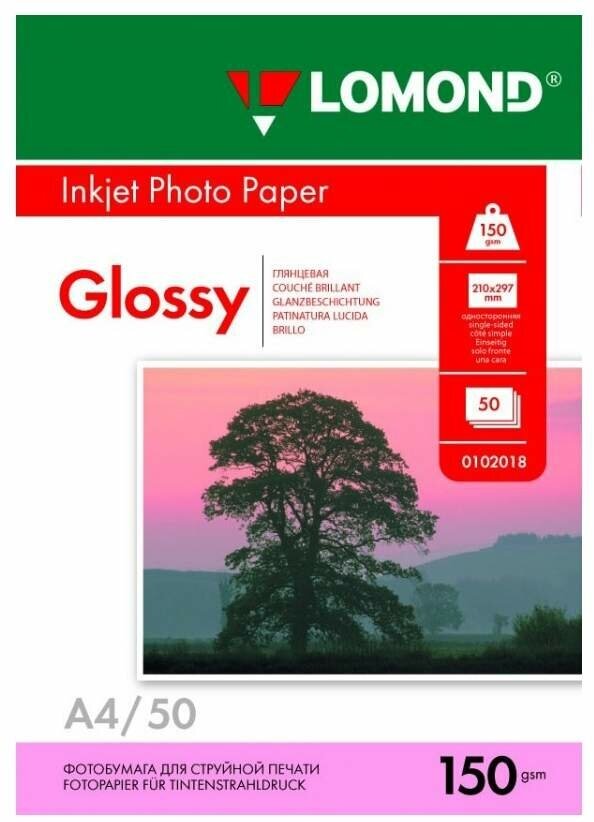 Фотобумага Lomond 0102018 A4/150г/м2/50 л/белый, глянцевая, для струйной печати
