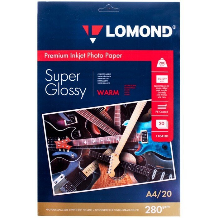 Купить Lomond 1104101 (Super Glossy Warm)-односторонняя Суперглянцевая тепло-белая A4 280g/m, 20 лист.