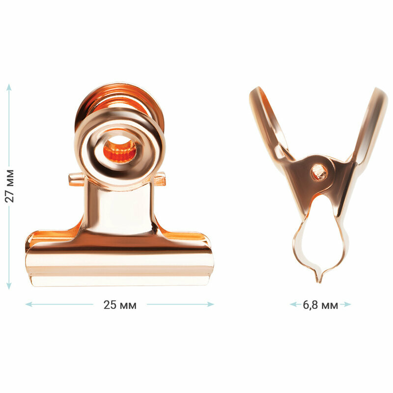 Зажимы-бульдоги для бумаг Meshu Rose Gold, 25 мм, 6 шт
