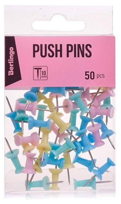 Купить Кнопки силовые Berlingo, 50шт., цветные, ПВХ упак., европодвес, ассорти пастель