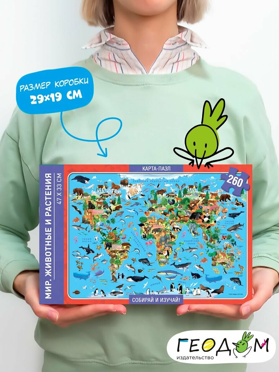 СохранитьКарта-пазл. Мир-животные и растения. 260 дет. 33х47 см. геодом интересное: