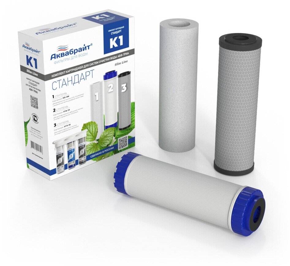 Комплект картриджей для очистки воды Аквабрайт К-1 Стандарт ПП-5 УГП-10 УГА-10 33651 .