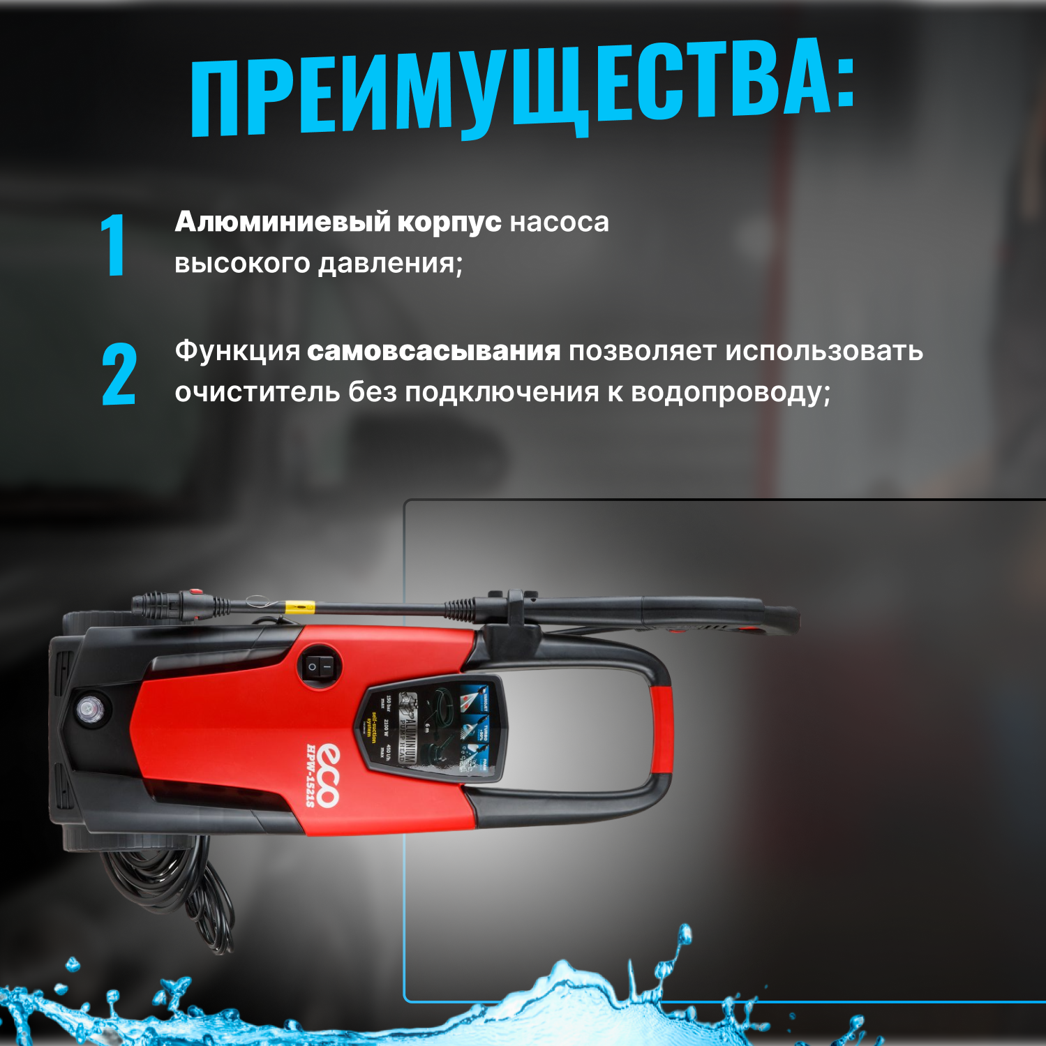 Мойка высокого давления Eco Мойка высокого давления ECO HPW-1521S (HPW1521S0001), 150 бар, 450 л/ч