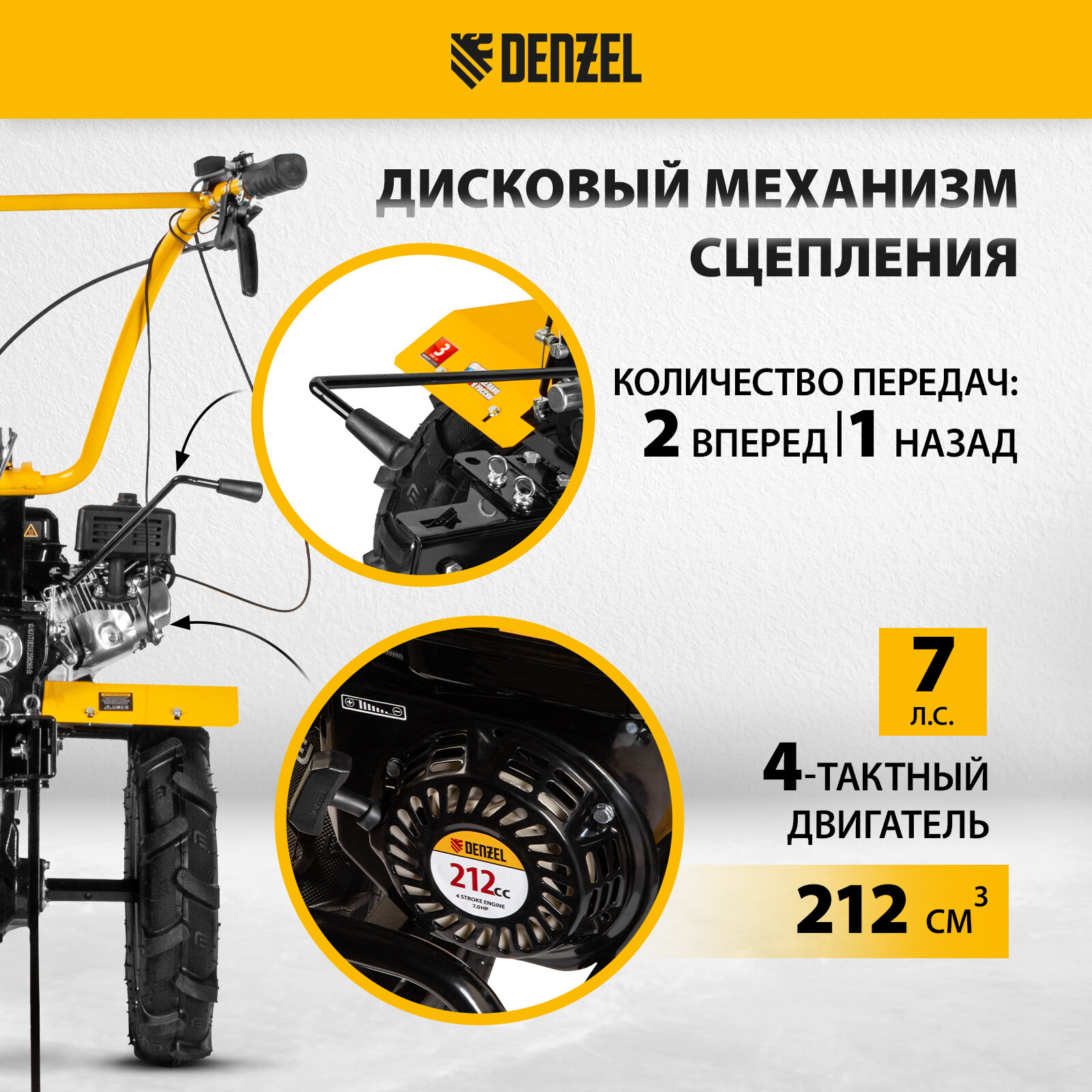 Мотоблок Denzel DPT-270X7 л. с, диск. сцеп, шир 90 см, глуб 35 см, фрез 3х4, ВОМ, передачи 2В/1Н 56403
