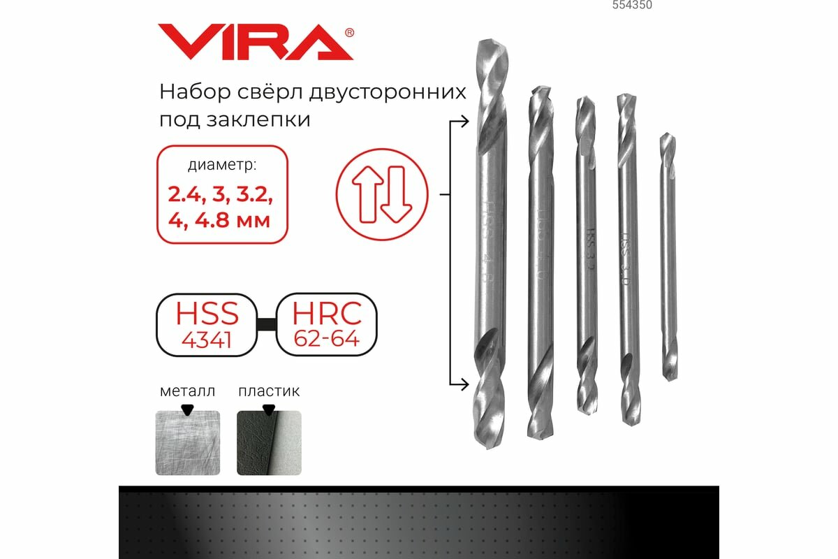 Набор сверл двусторонних под заклепки Vira 2.4/3/3.2/4/4.8 мм