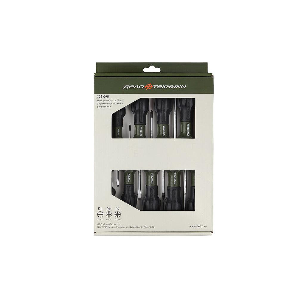 Дело техники 728095 набор отверток! c трехкомпонентными рукоятками SL, PH, PZ 9 шт.\