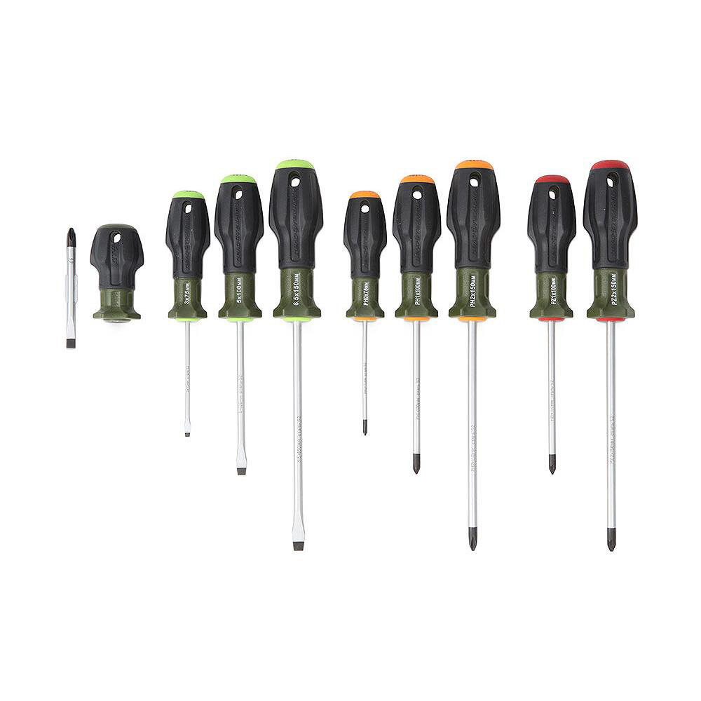 728095 Набор отвёрток c трехкомпонентными рукоятками (3?75 5?100 6,5?150 PH0?75 PH1?100 PH2?150 PZ1?100 PZ2?150 PH2?SL6?38 мм), 9 дело техники 728095