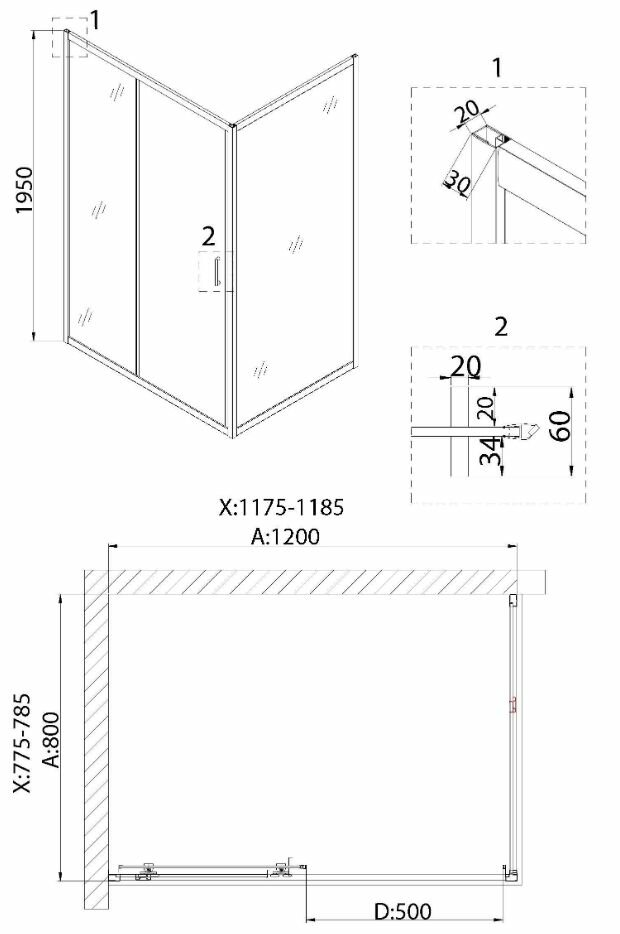 Душевой уголок Niagara Nova NG-6812-08 BLACK (120*80*190) прямоугольник, дверь раздвижная