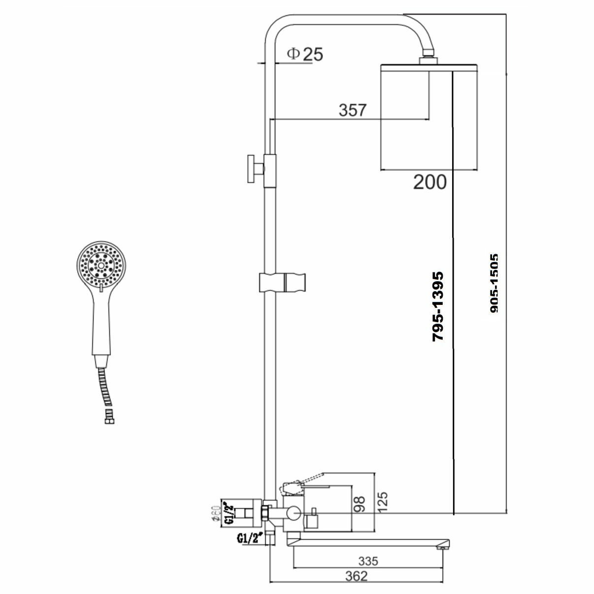 | Комплектация | Смеситель / лейка для душа / шланг для душа / верхняя лейка / держатель для лейки / монтажный комплект для установки |