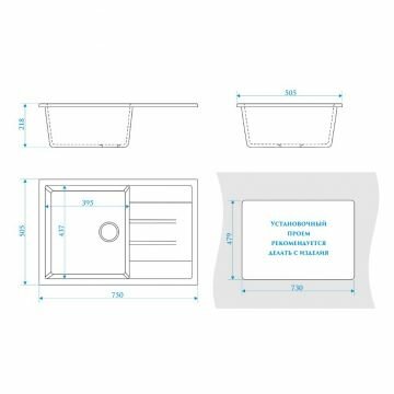 Кухонная мойка мраморная ZETT lab. 161/Q7 хлопок