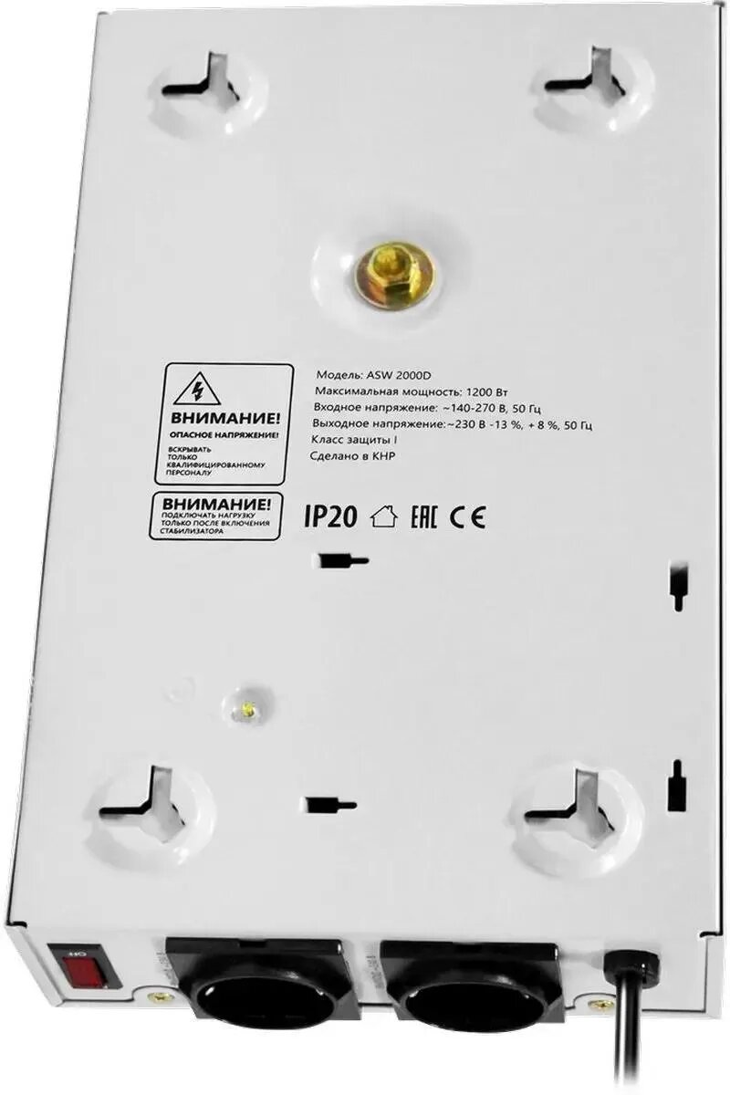 Стабилизатор напряжения ASW 2000D настенный 1200Вт толщина 65мм, 2 розетки