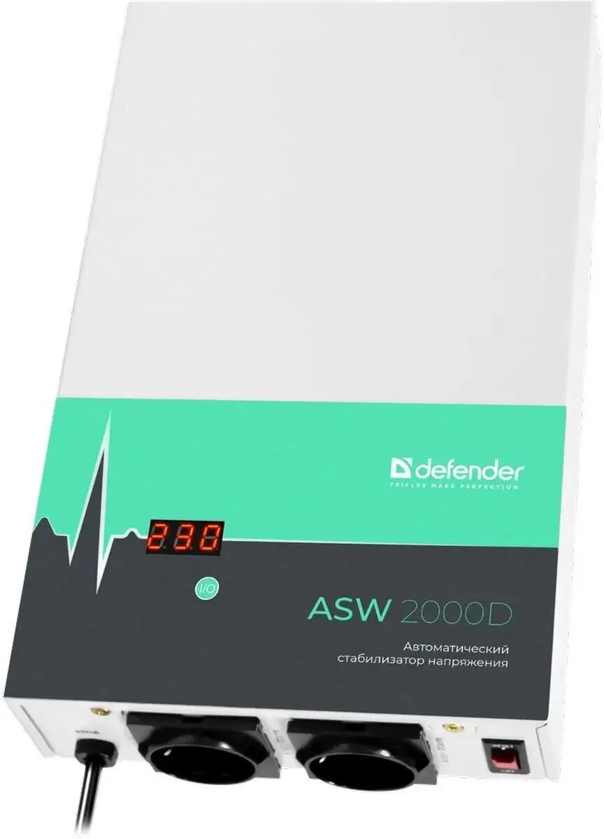 Стабилизатор напряжения Defender ASW 2000D настенный 1200Вт толщина 65мм, 2 розетки