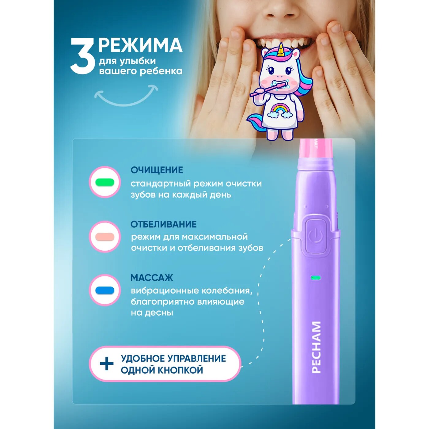 Купить Детская электрическая зубная щетка PECHAM Kids Smart Unicorn 3+, 2 насадки, Electric toothbrush