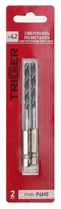Триггер 73442 сверло с шестигранным хвостиком Р6М5 4,2мм (2шт) / TRIGGER 73442 сверло с шестигранным хвостиком по металлу Р6М5 4,2мм (упак. 2шт.)