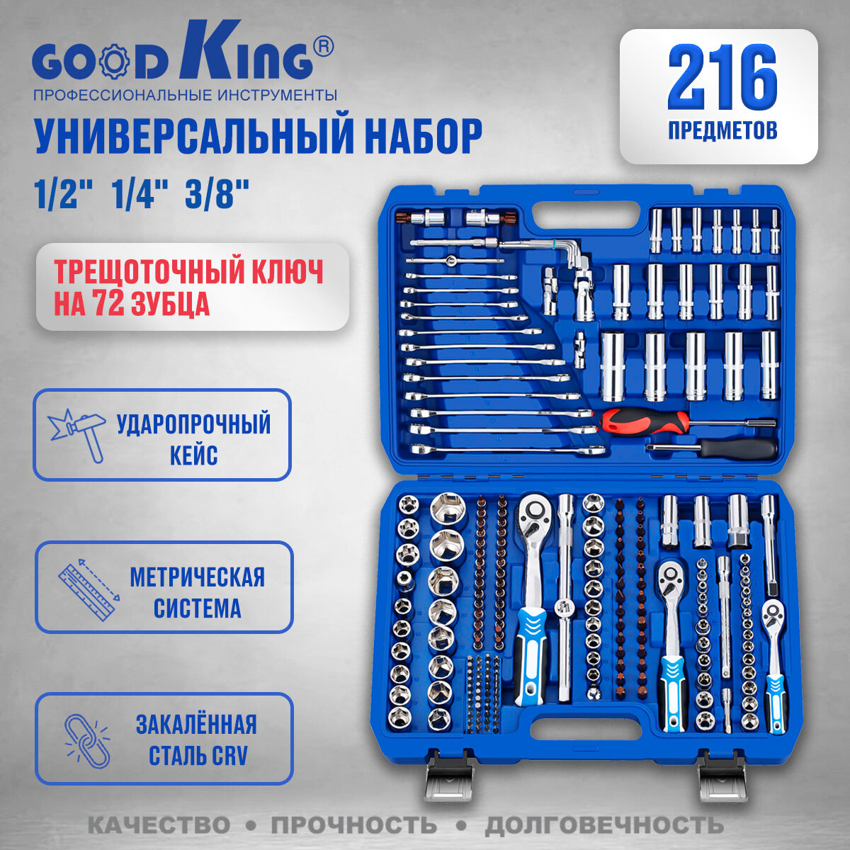 Набор инструментов GOODKING, 216 штук, трещотка 1/2", 1/4", 3/8", универсальный, для дома, для автомобиля (K-10216)