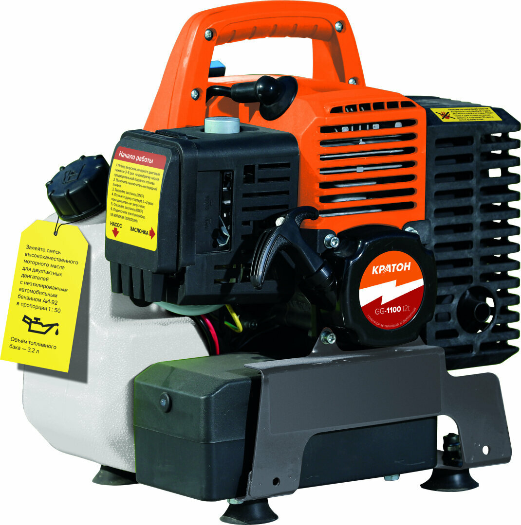 Генератор бензиновый двухтактный инверторный для дома Кратон GG-1100i 2t, медь, 0.95 кВт, 220В, 1 розетка, ручной стартер интересное: