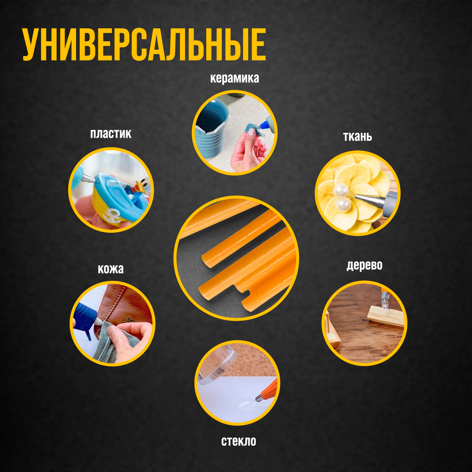 --- Клей для клеевого пистолета "Золото" 7ммх18 см (набор 6 шт)