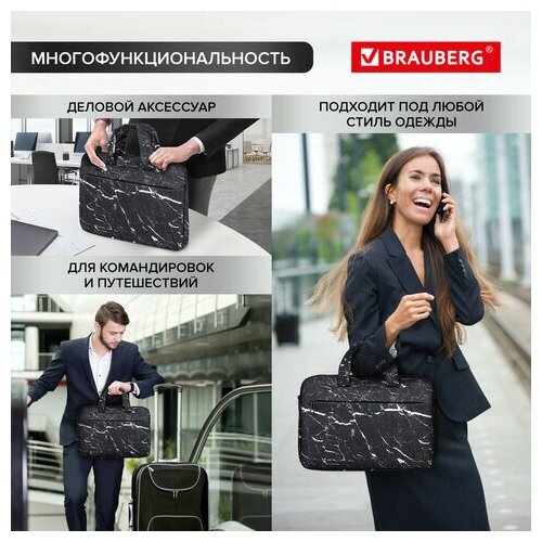 Сумка-портфель Brauberg "Marble" с отделением для ноутбука 14", 3 кармана, 26х36х3 см, 270835