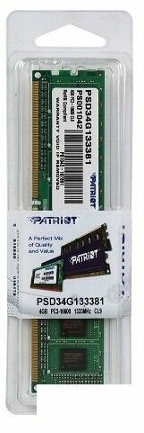 Модуль памяти Patriot PSD34G133381 DDR3 - 4ГБ 1333, DIMM, Ret