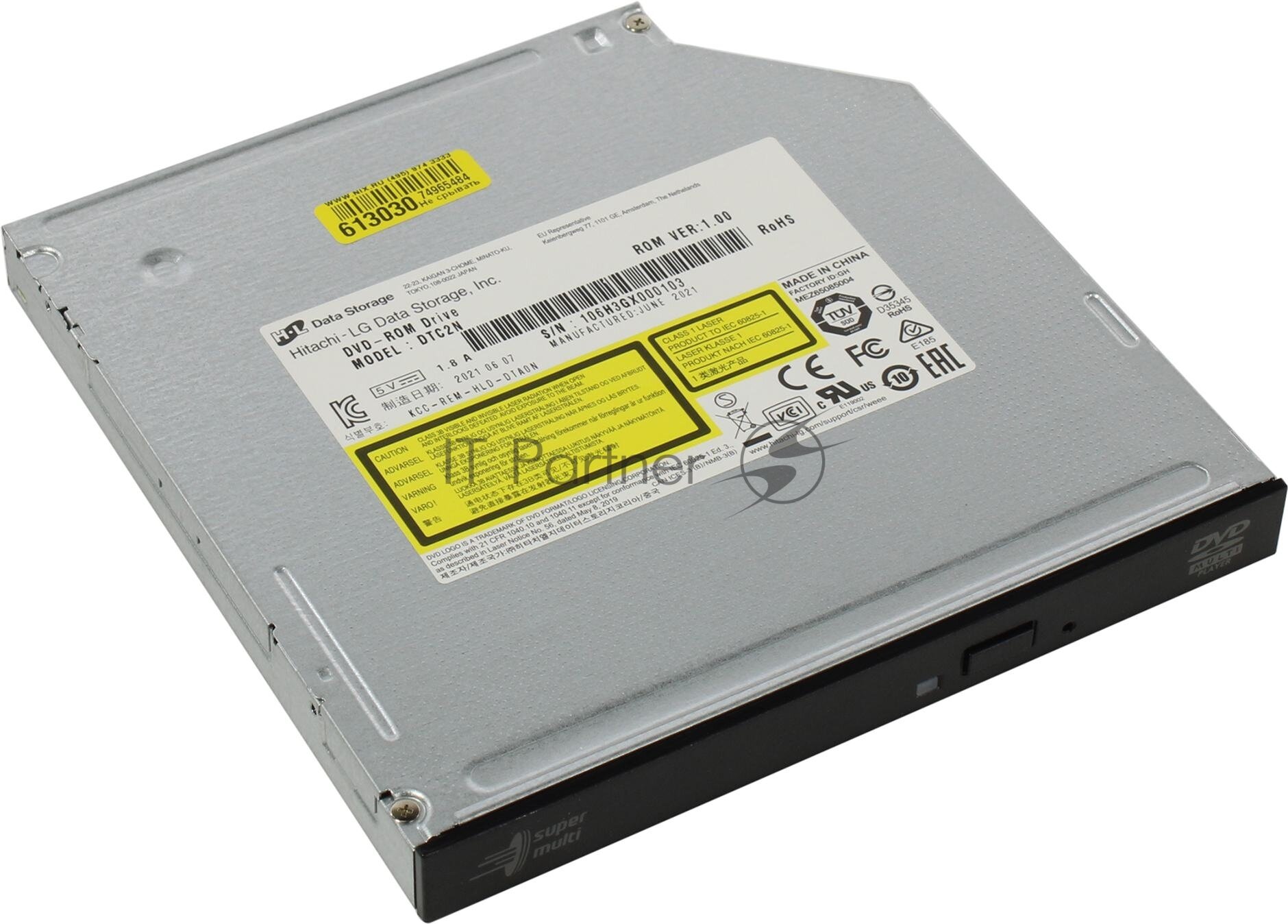Привод DVD-ROM LG DTC2N internal slim, SATA, DVD±R 8x, DVD±R DL 8x, DVD-RAM 5x, DVD-ROM 8x, CD 24x, 12.7mm, black, Bulk