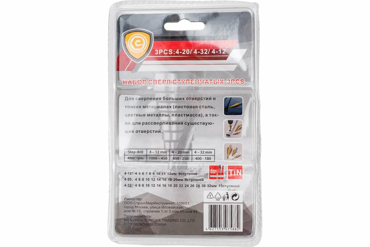 Strong Набор сверл ступенчатых G1, 3 предмета, 4-12 мм; 4-20 мм; 4-32 мм СTМ-52900003 .