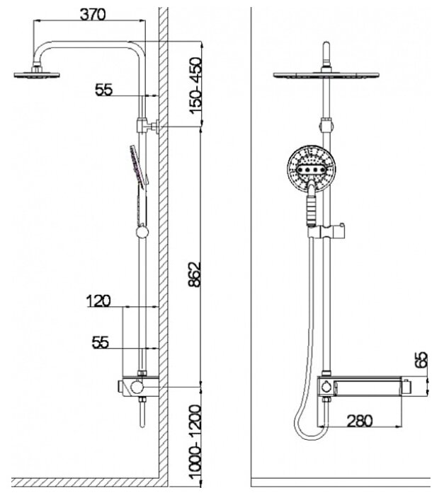 | Дополнительная информация | высота стойки для душа: 1300 мм; диаметр душевой лейки: 120 мм; диаметр верхнего душа: 225 мм |