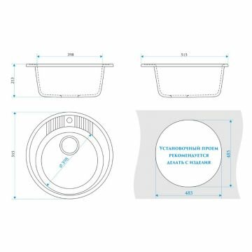 | Особенности | отверстие под смеситель / корзинчатый вентиль |