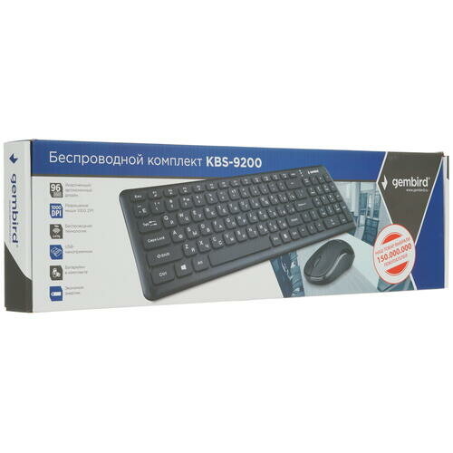 Клавиатура + мышь Gembird KBS-9200, беспроводная, USB, черный (KBS-9200)