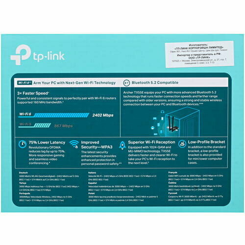 Купить TP-Link Archer TX55E AX3000 Wi-Fi 6 Bluetooth 5.2 адаптер PCI Express