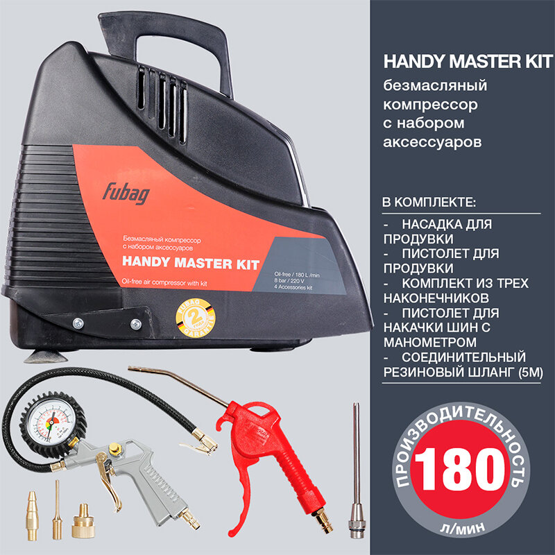 Компрессор поршневой FUBAG Handy Master Kit + 5 безмасляный [8213690koa607 (8213690koa536)]