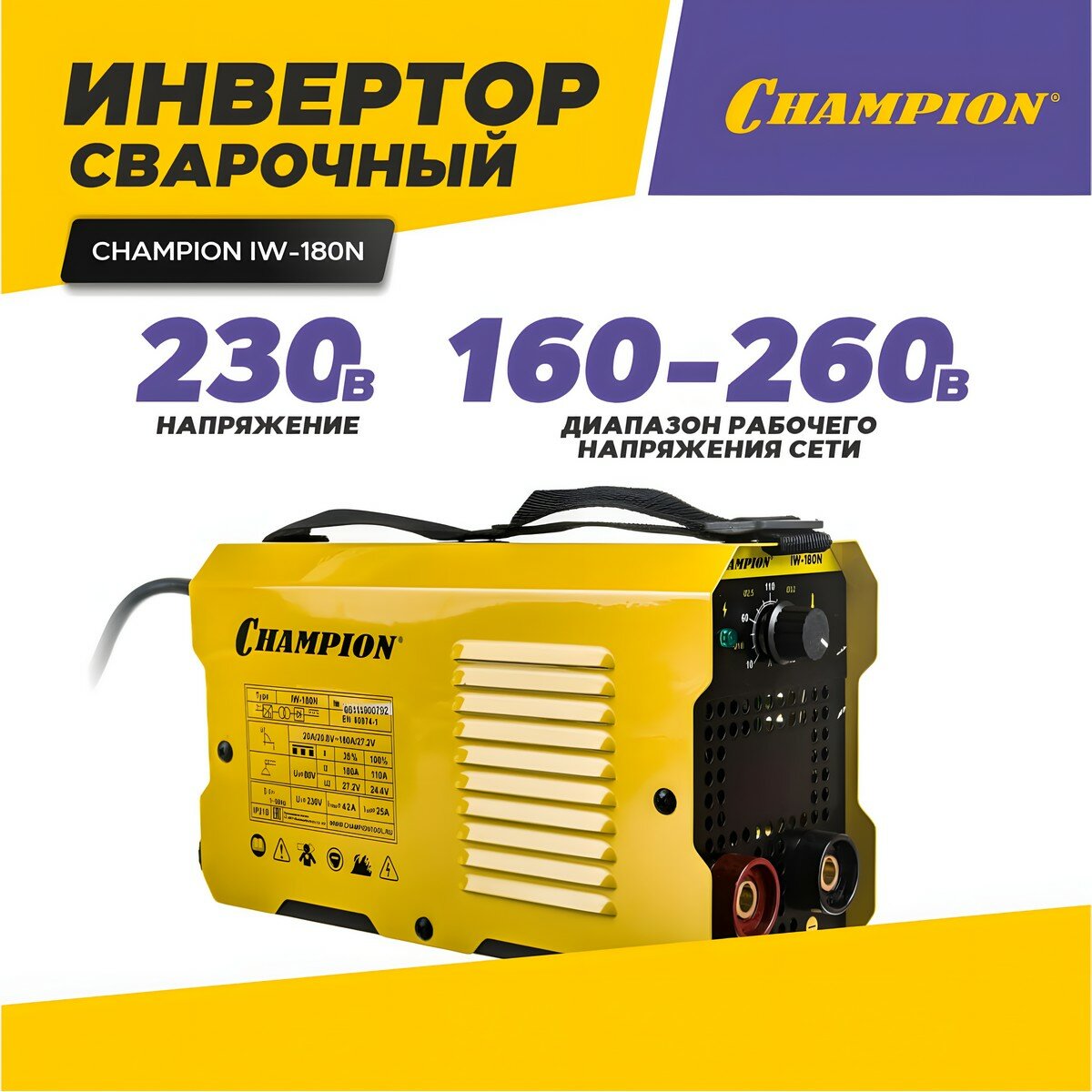 Сварочный аппарат полуавтомат CHAMPION IW-180N / сварочный инвертор ручной (ММА, ток 20-180 А)