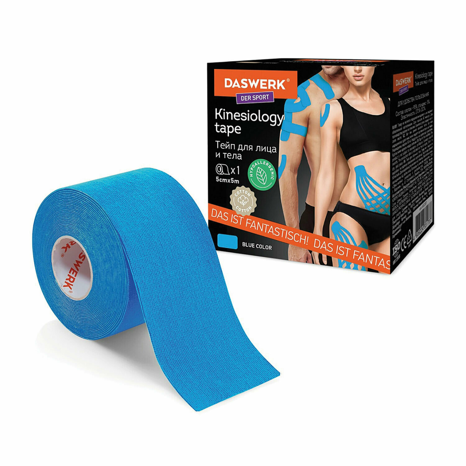 Кинезио Daswerk тейп/лента для лица и тела, омоложение и восстановление, 5 см х 5 м, синий, , 680007