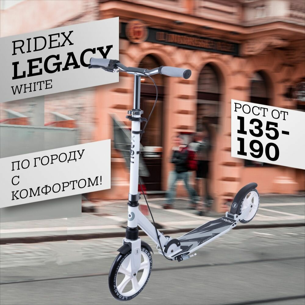 RIDEX Самокат 2-х колесный RIDEX Legacy 250/200 мм, ручной тормоз, белый