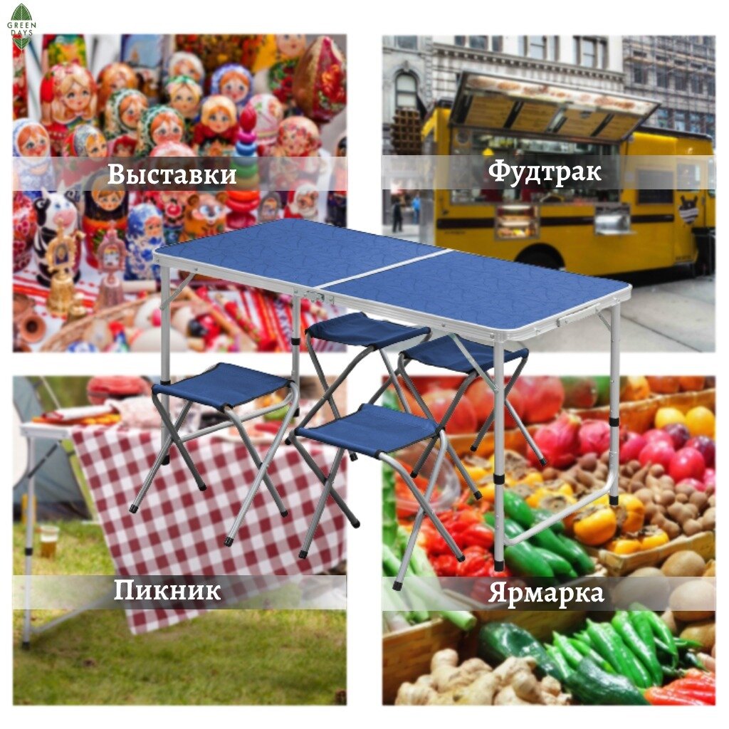 СохранитьСтол складной металл, прямоугольный, 120х60х68.5 см, столешница МДФ, синий, Green Days, 4 стула интересное: